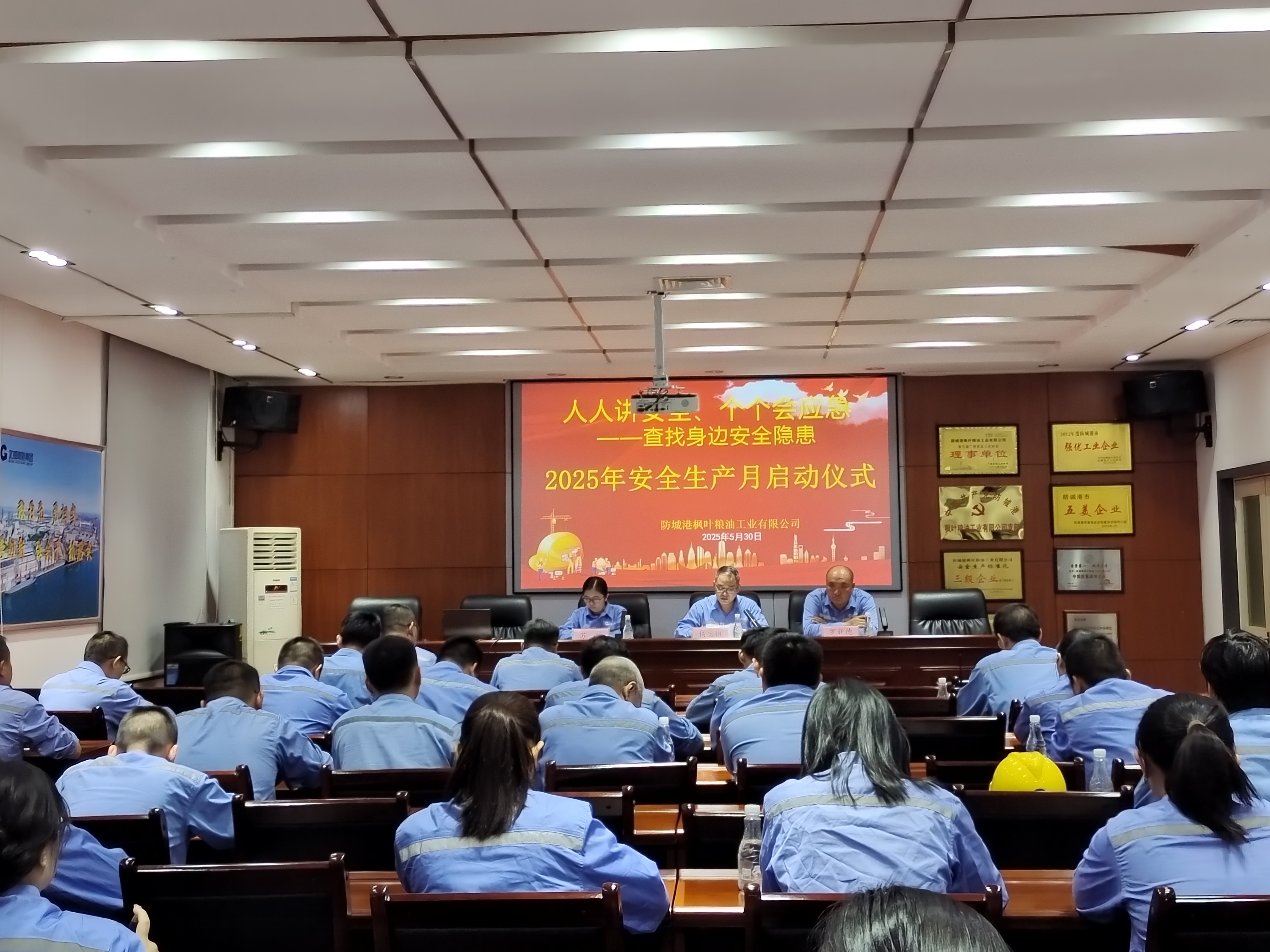 近日,北港油脂正式启动以“人人讲安全、个个会应急——查找身边安全隐患”为主题的2025年“安全生产月”专项活动。公司领导班子成员、本部各部室负责人及安全管理人员参加启动仪式,公司党委副书记、副董事长、总经理罗小华主持会议,党委书记、董事长杨文部署重点工作。
