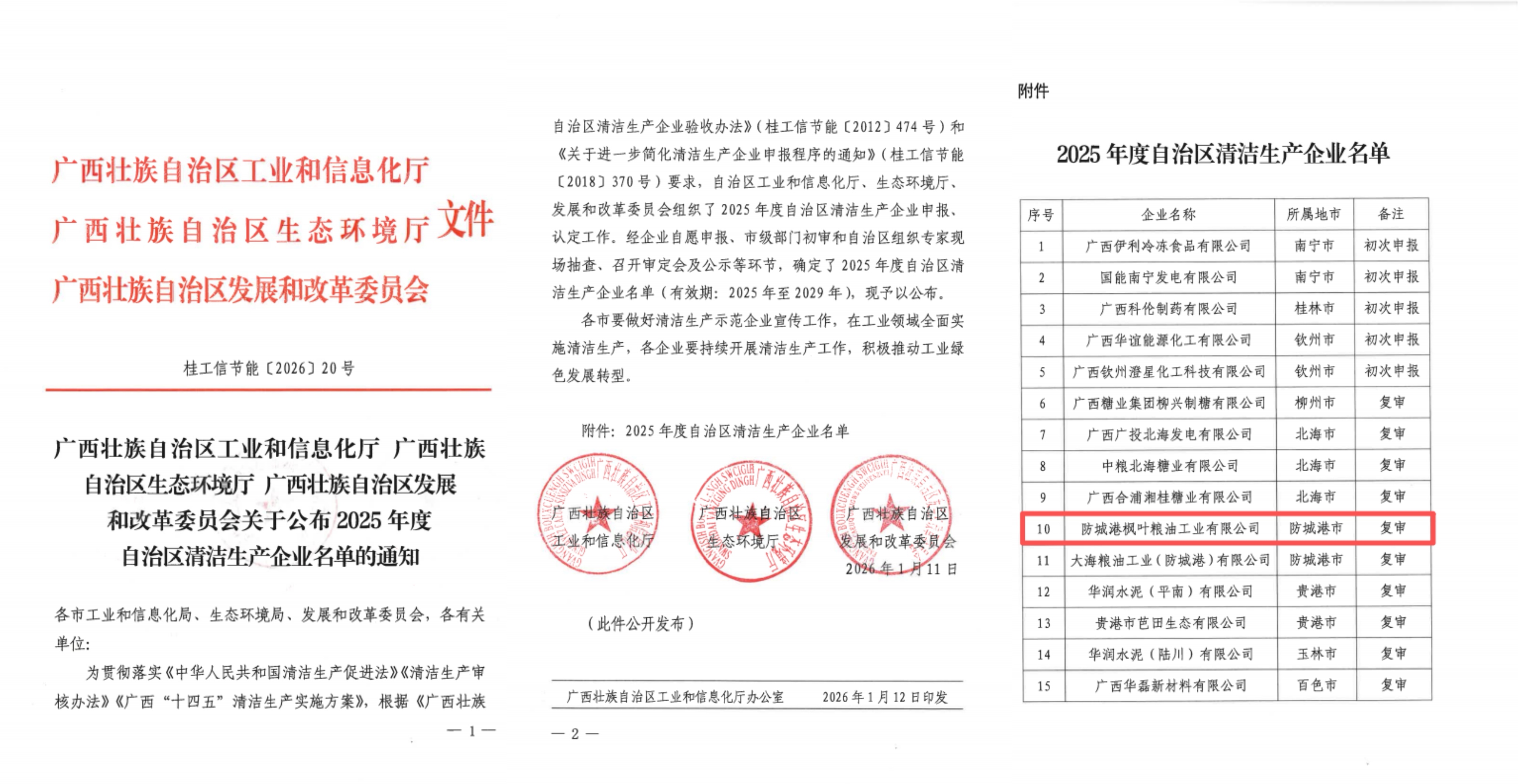 近日,枫叶粮油顺利通过自治区清洁生产企业复审,标志着公司绿色发展转型成效再度获得认可。